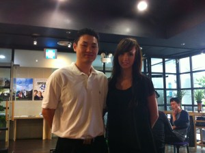 Upon leaving the theatre, I was approached by a man with a camera who was going around the room asking for peoples’ opinions on the film. I agreed to tell him what I thought of it; he thanked be afterwards and mentioned he was the director. I thought it was so cool that he was there, and knew I needed to get a photo with him for my blog. He’s not famous in Korea, but I still thought it was really neat that he was there and interacting with the people who’d just seen his film.
