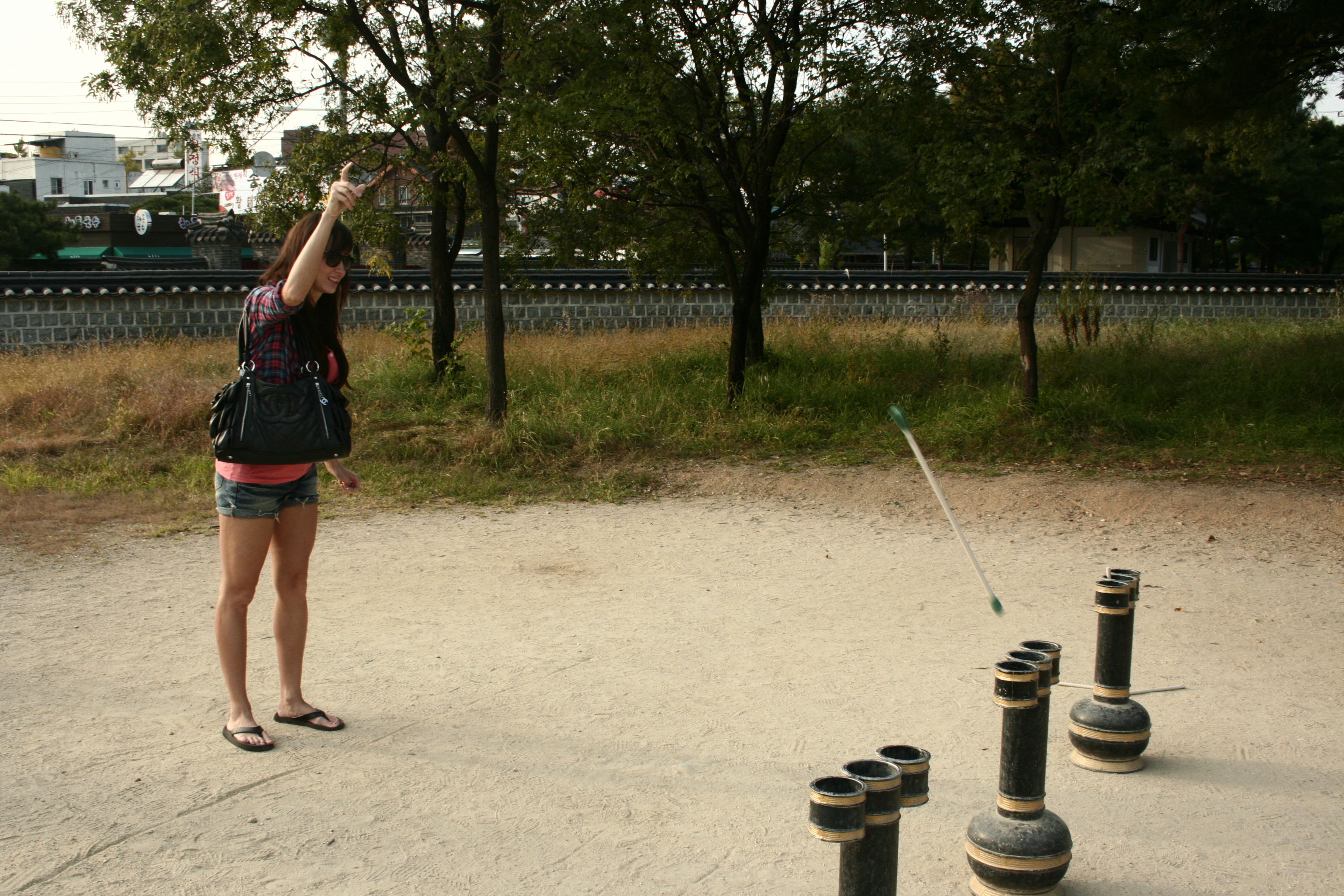 Playing a traditional Korean game.