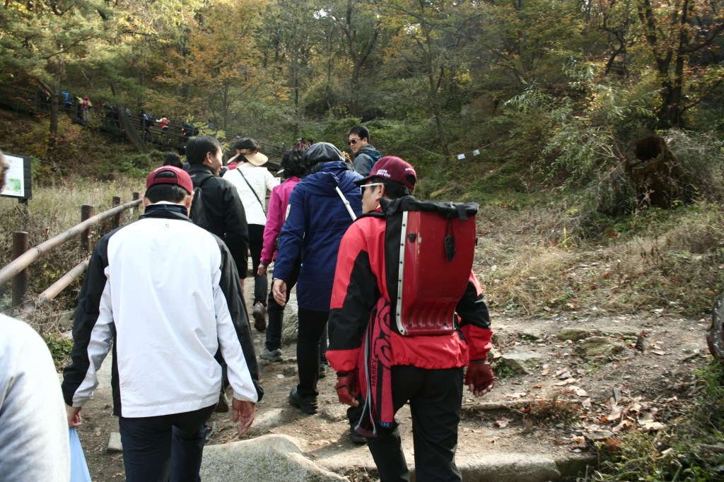 On Saturday November 3rd, the International Office took the exchange students on a hike up the famous Mt. Bukhansan, approximately a 1.5 hour drive from the university. The mountain offers breathtaking views of Seoul below and is supposed to be beautiful in the autumn, so even though I’ve never been much of a “hiker” (that’s a massive understatement, as anyone who knows me well can confirm!) I figured YOIKO (“you’re only in Korea once”)! I signed up and off we went.
