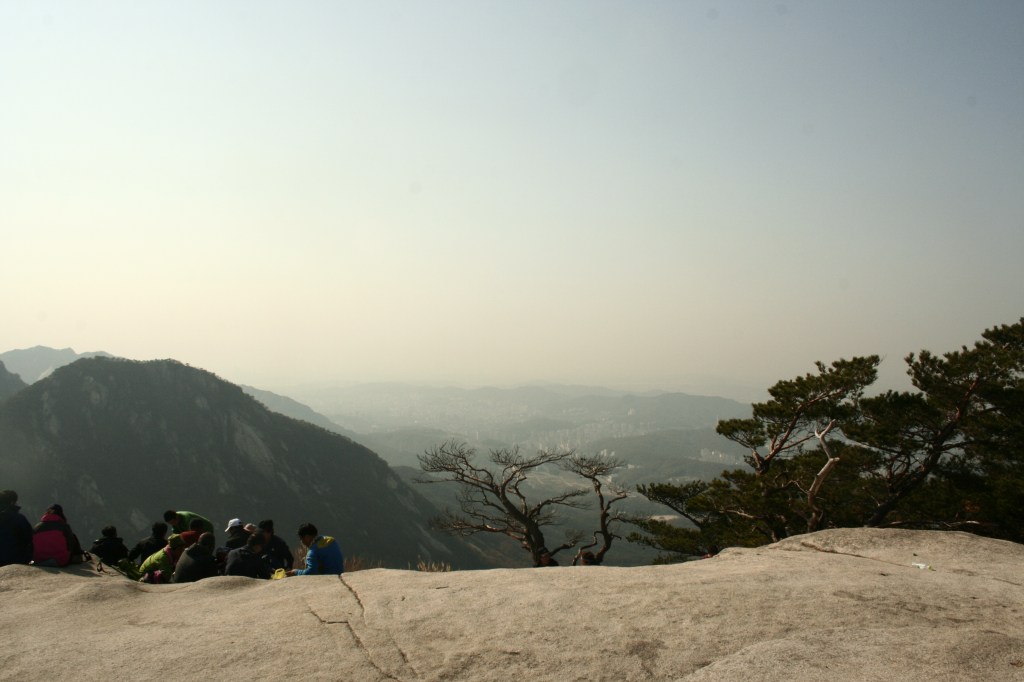 After a few minutes of some more hiking (the trail felt almost vertical at points!), we finally we reached the top! In the background, you can see Seoul..