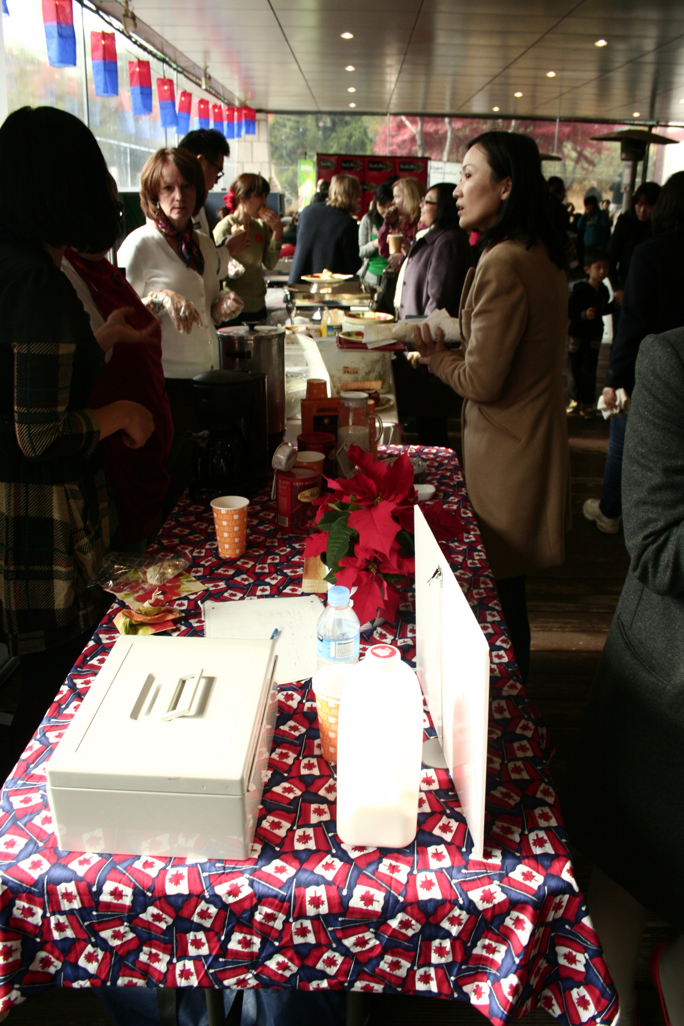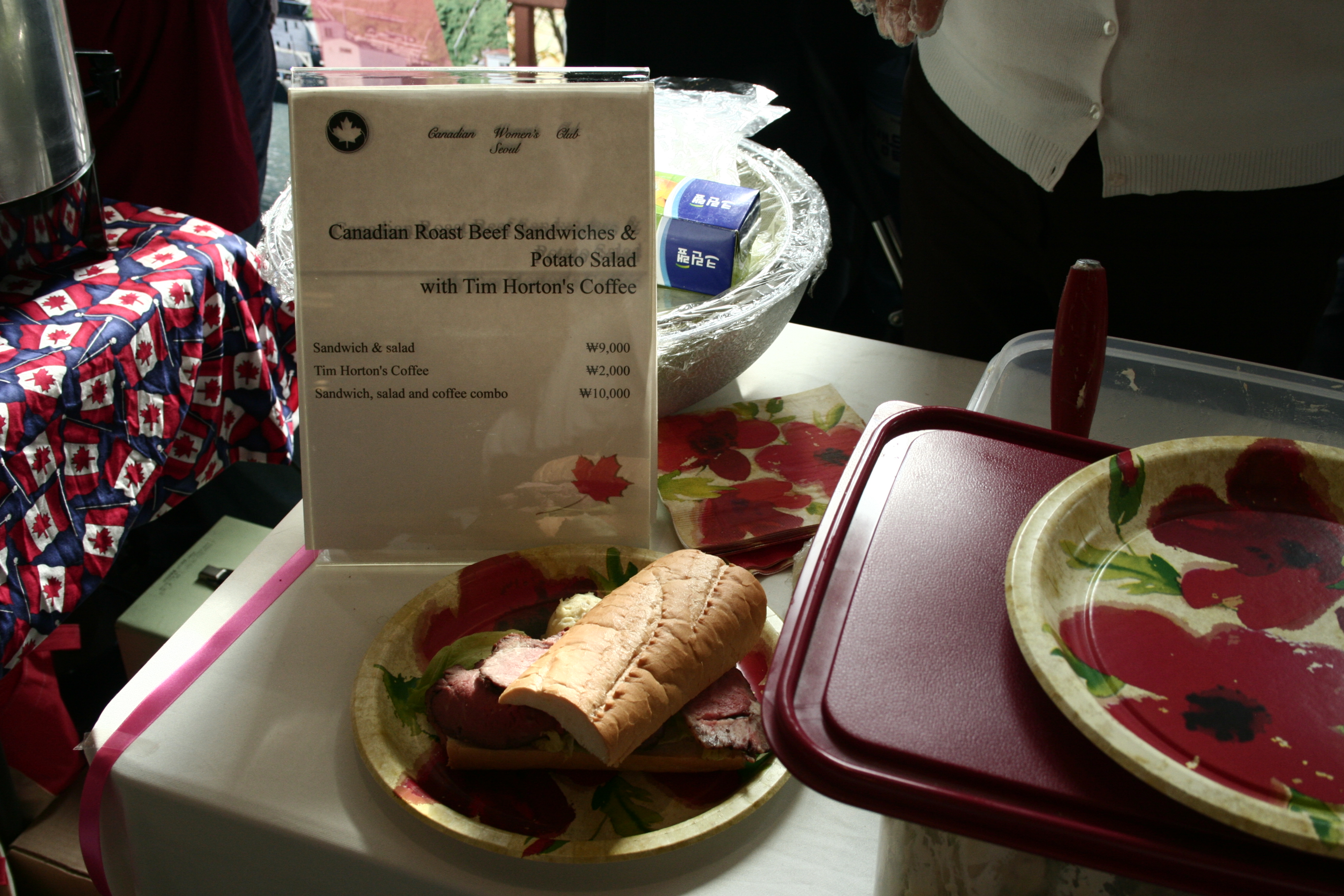 In true geographic style, across from Canada’s booth was the US’s. It looked like it was straight out of a county fair! Decent baked goods are hard to come by here in Seoul, as the price for butter is so high. Yes, you can buy cookies at nearly any of the countless convenience stores or chain bakeries that dot the streets of Seoul, but what you end up with is a cookie devoid of any moisture – biting into a hockey puck might be a more pleasant experience (but at least the hockey puck wouldn’t crumble all over you..)