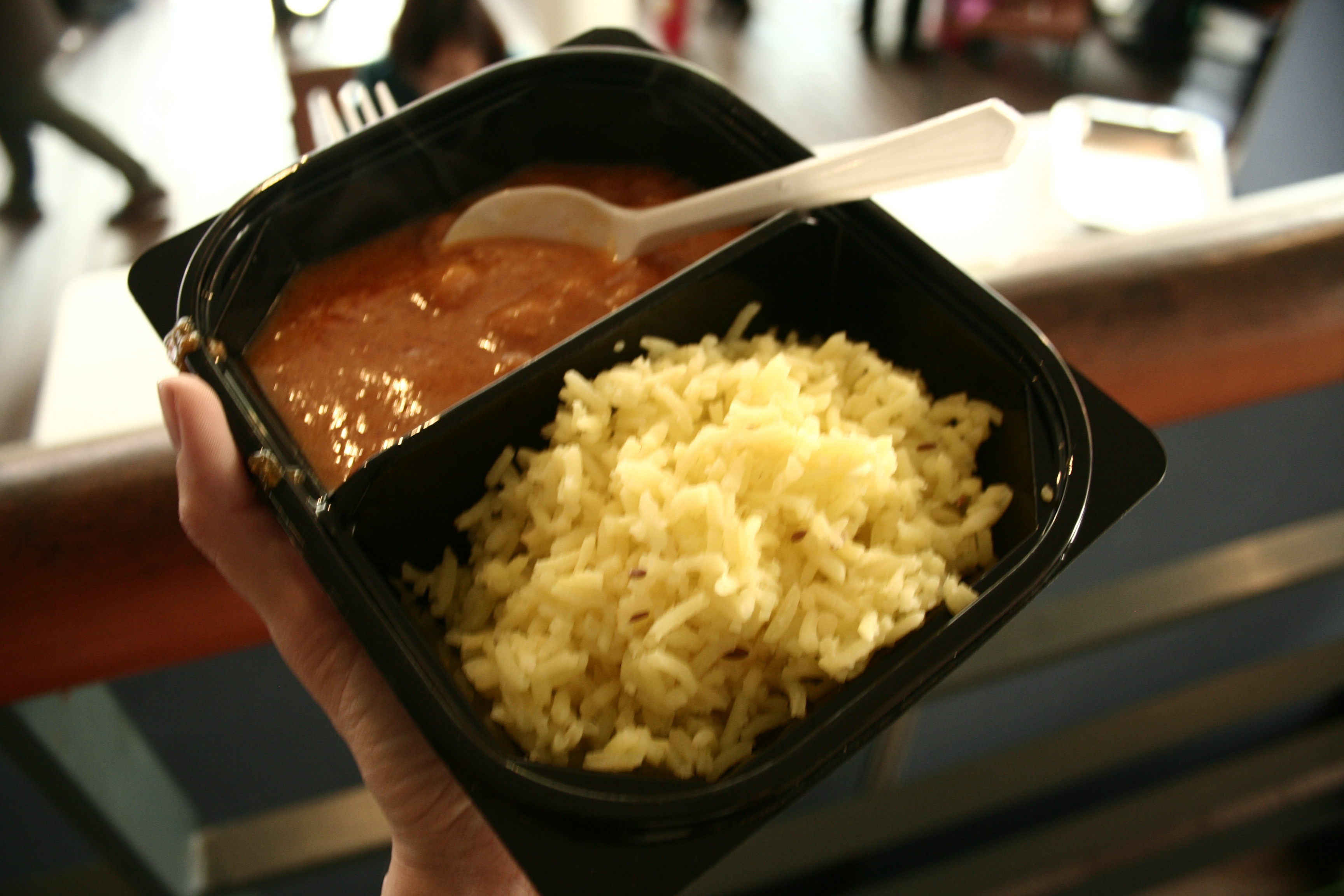 For lunch, I took a trip to the Indian table and decided to try some of their curried chickpeas and naan. Sadly, the naan bread had sold out, so I had their jasmine rice instead – a nice change from the sticky white rice eaten most often in Korea. I’m not a huge fan of the stuff.