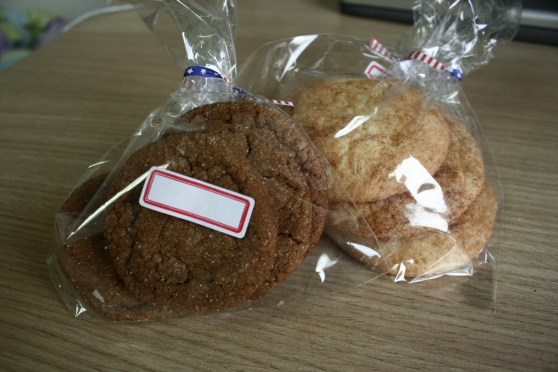 It was way too hard to choose which things I wanted! The prices were quite reasonable, but I didn’t want to empty my wallet on cookies that I would gobble up in a matter of days 🙂 There were sugar cookies, those little peanut butter cookies with Hershey kisses on them, ginger snaps, lemon zucchini and pumpkin bread, pumpkin tarts, snickerdoodles, raisin cookies, and the list goes on! I decided on ginger snaps and snickerdoodles, although I was seriously eyeing up some of that lemon zucchini bread! Willpower, willpower…