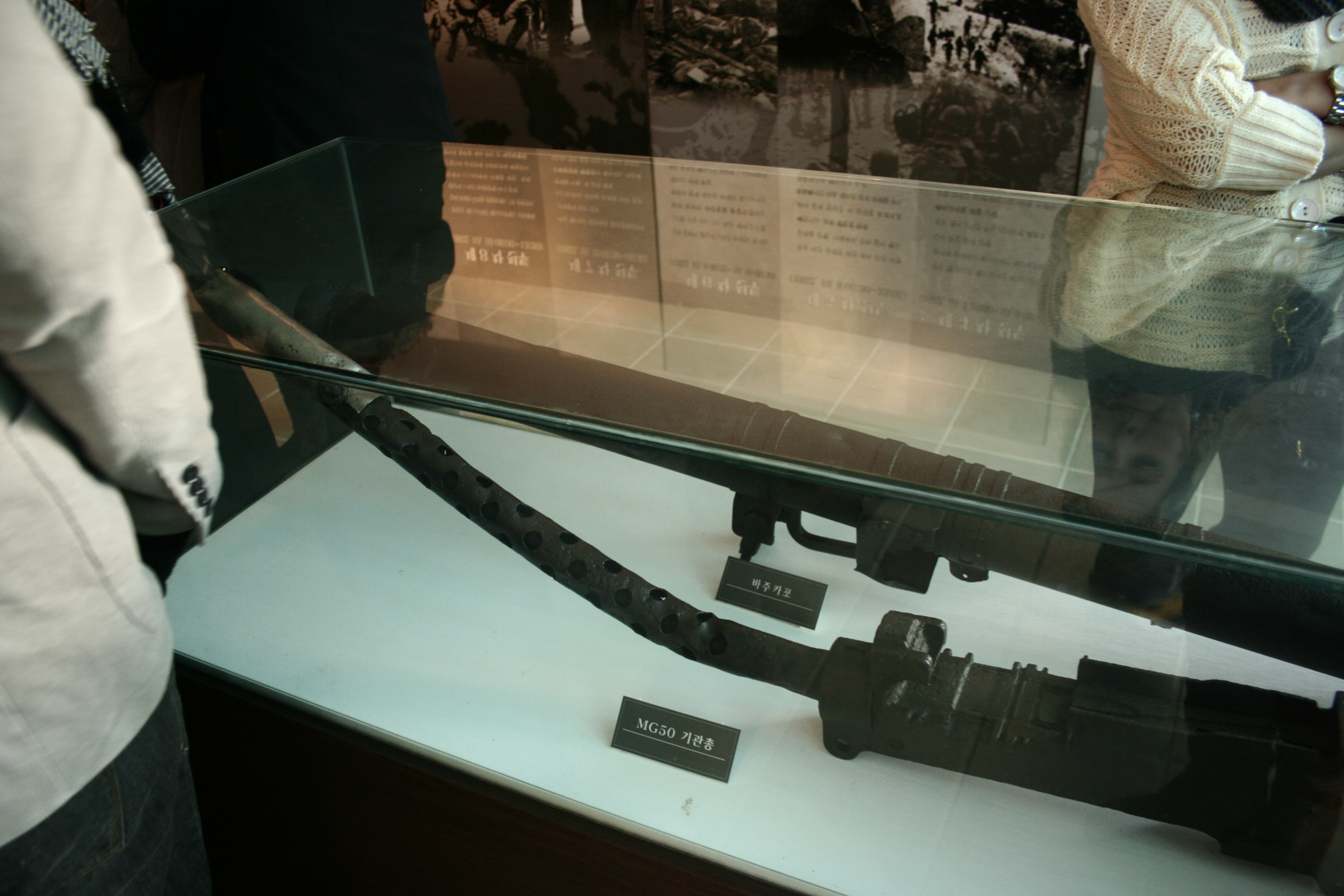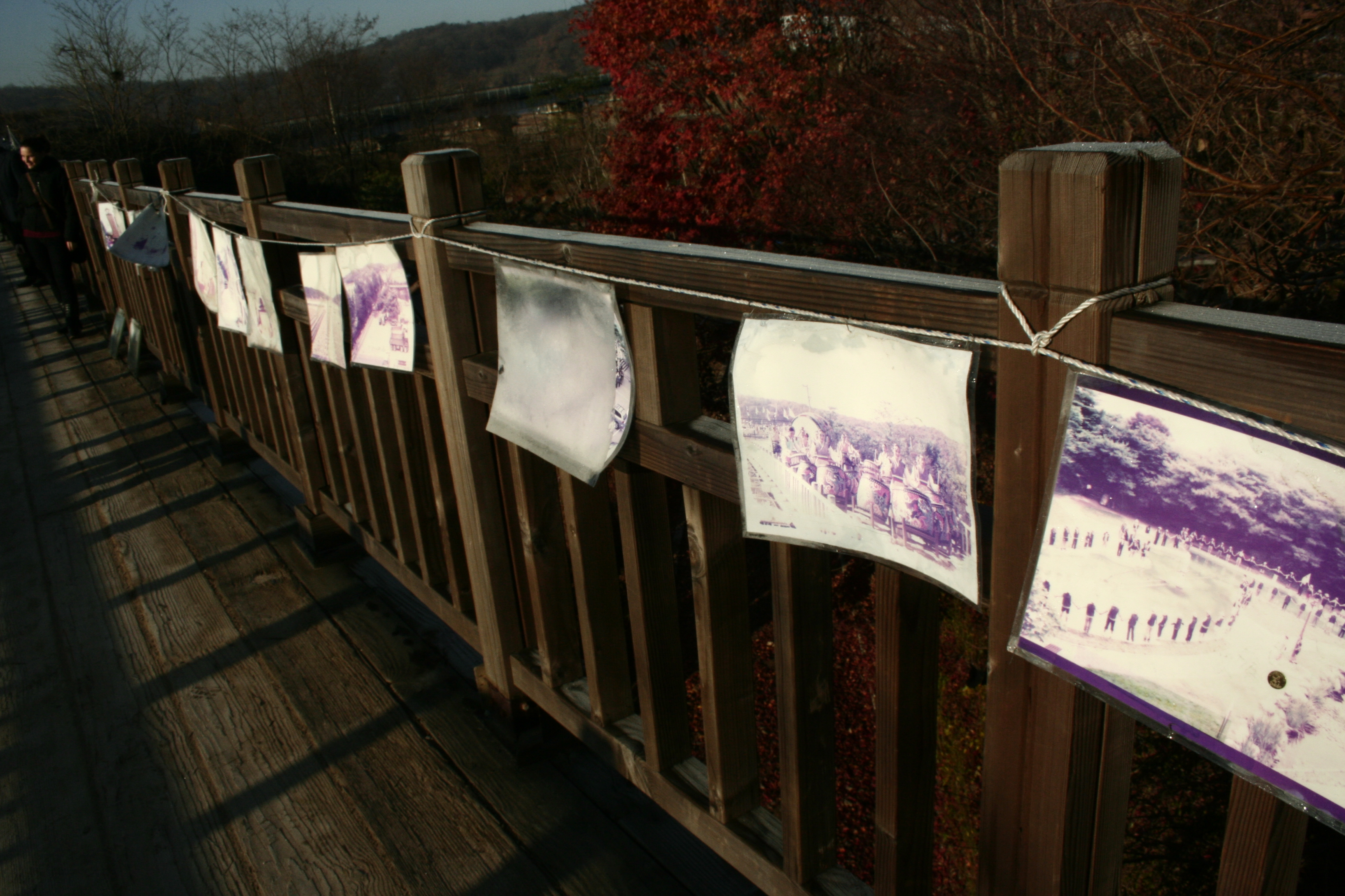 Photos with images of the war that lined the bridge