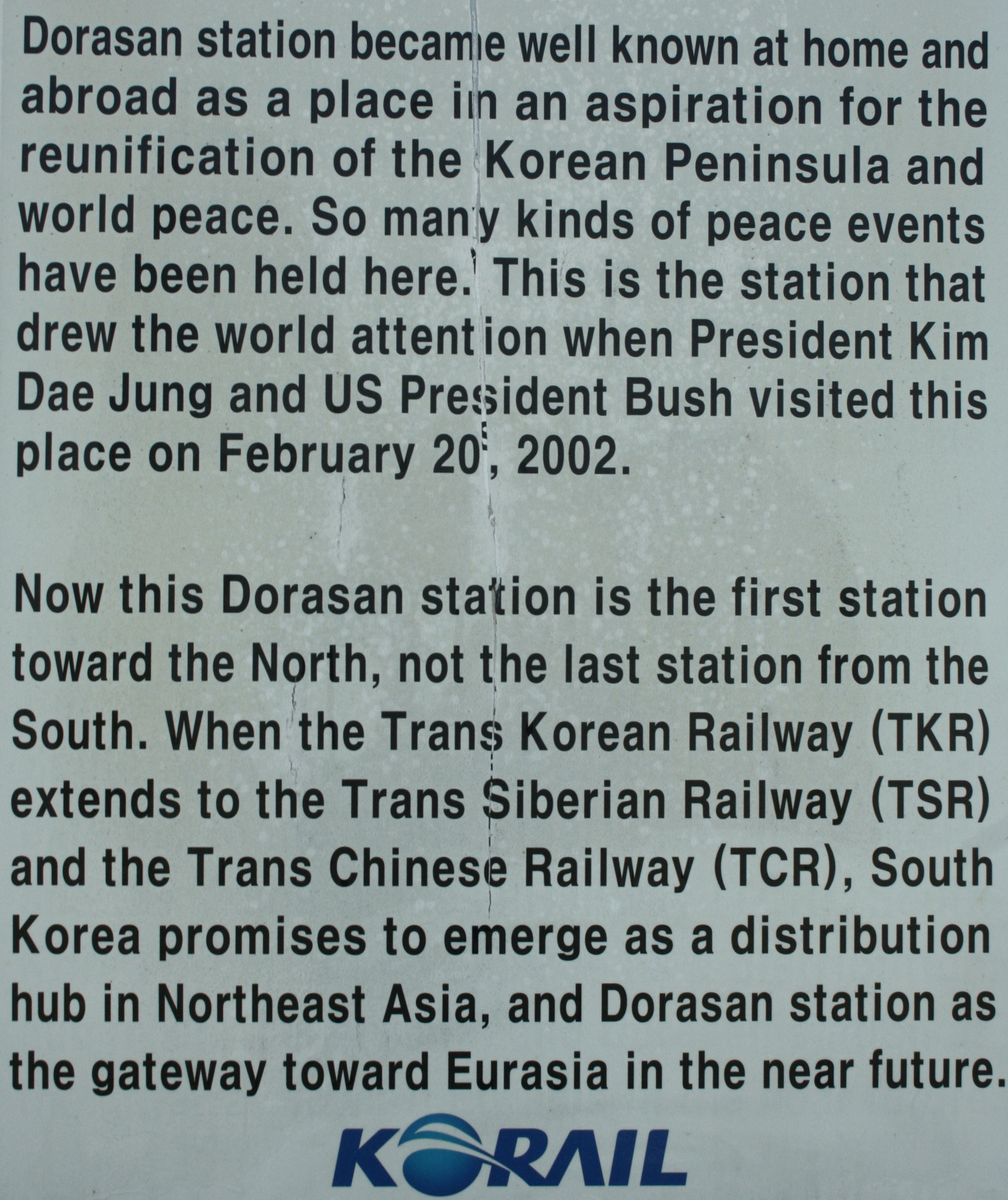 It was built as a symbolic gesture. The hope is that one day, after unification, a railway will be created to go across the peninsula and thereby connect Korea with the rest of Asia and Europe.
