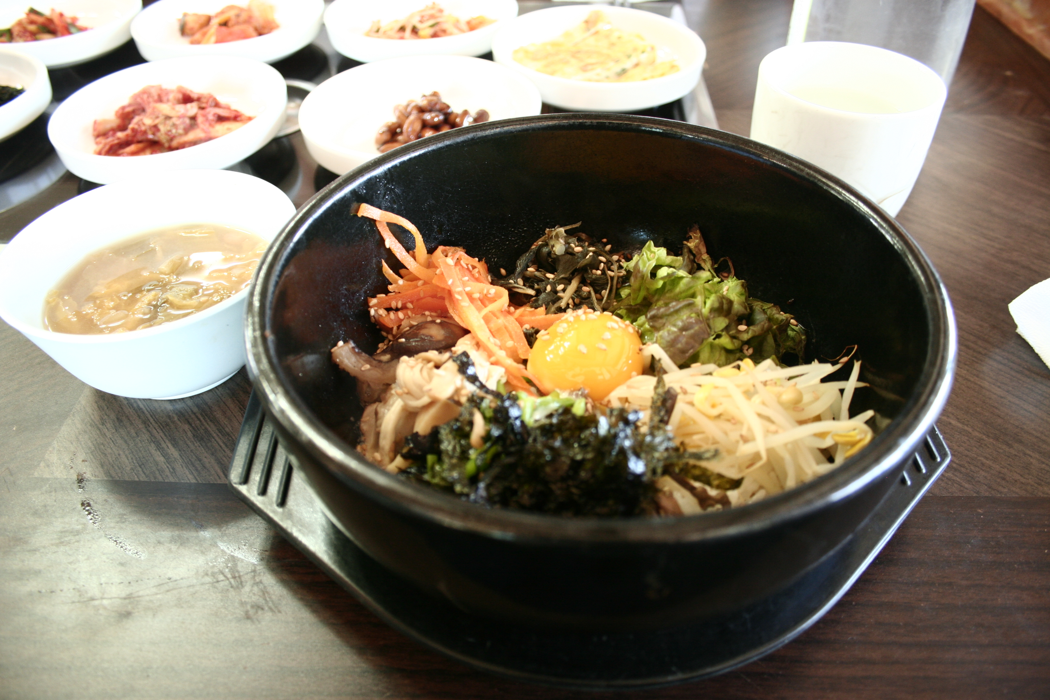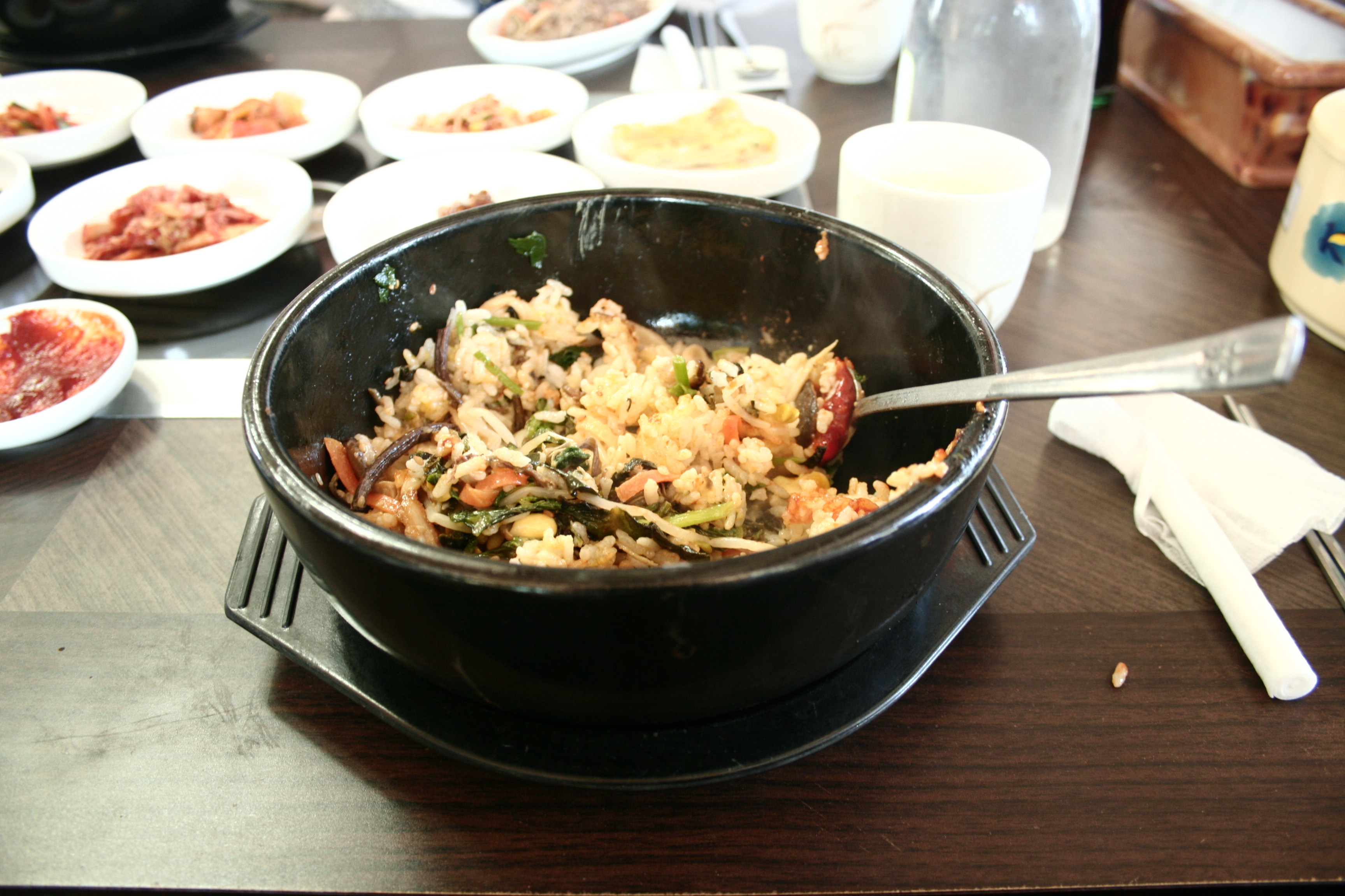 This was the restaurant our guide reccomended, and he even called in ahead to take pre-orders. Within a few minutes of sitting down, our meals were delivered to us piping hot. We had the choice between bulgogi (Korean marinated beef) or doslot bibimbap (mixed veggies + raw egg on top of rice, served in a hot clay bowl). I’d had the cold version of bibimbap before and sort of liked it, but this hot version blew my mind! The hot bowl makes the rice all warm and a little crispy on the outside, while also cooking the raw egg.