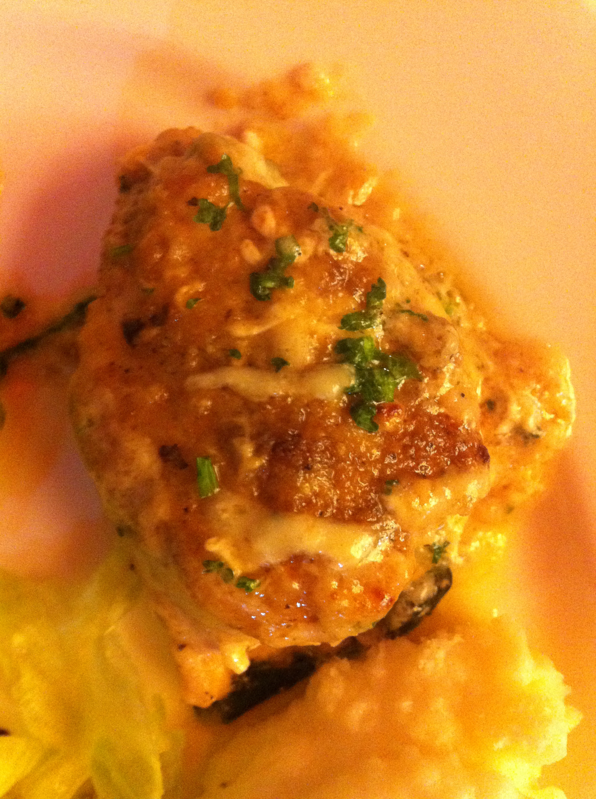 (Chicken breast stuffed with ham, mozzarella cheese and spinach)