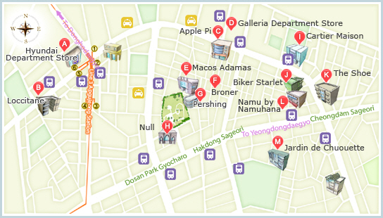 Map of Apgujeong area – Hyundai Department store is at the top left (Photo: Vist Korea)
