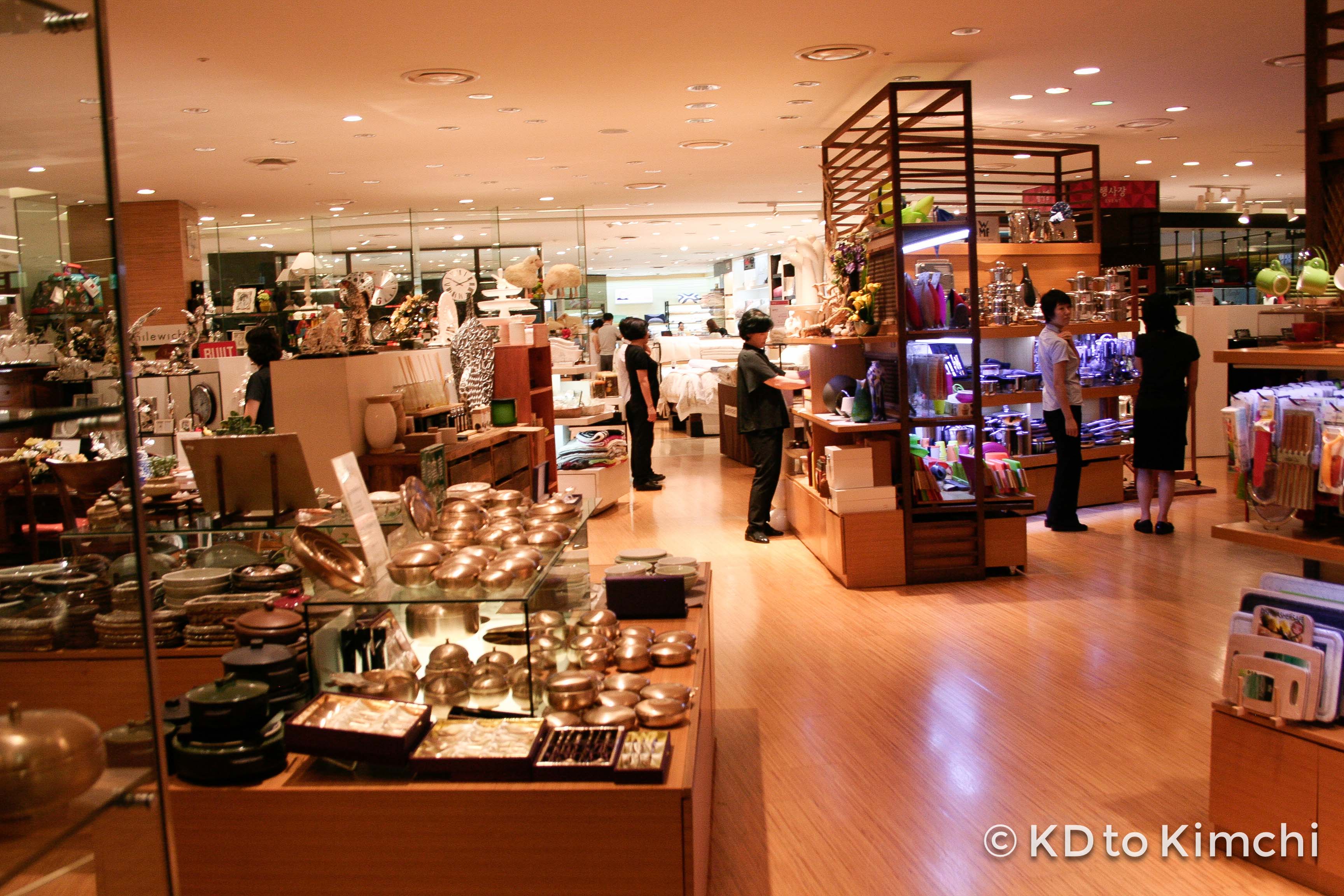 Kitchenwares for sale on the same floor as the food court. To the left are traditional Korean serving bowls. Quite smart, actually - the metal keeps cold food cold, and hot food hot.